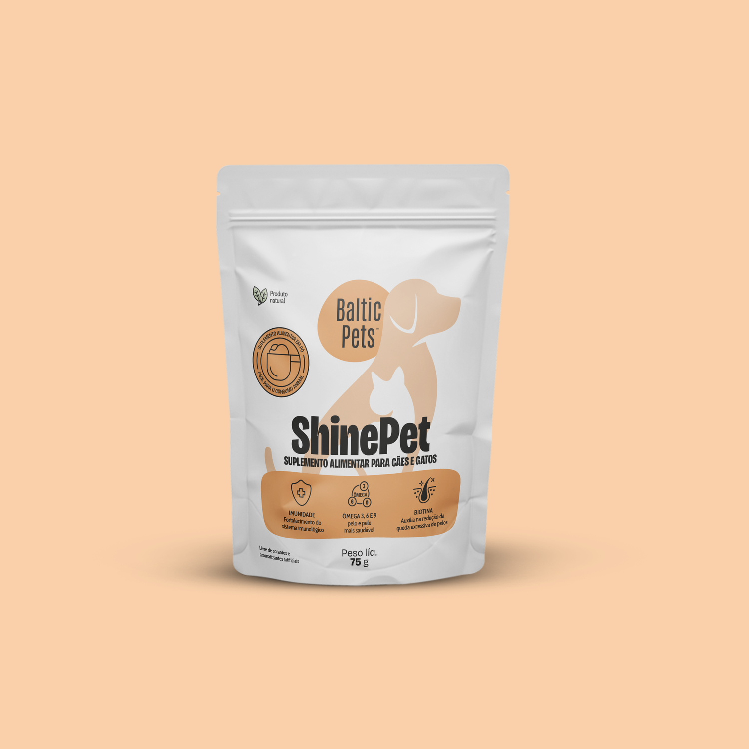 O ShinePet é um suplemento com uma fórmula desenvolvida para melhorar a saúde da pele e dos pelos de cães e gatos. Sua fórmula promove uma pelagem brilhante e saudável, além de fortalecer a barreira cutânea contra infecções e irritações.